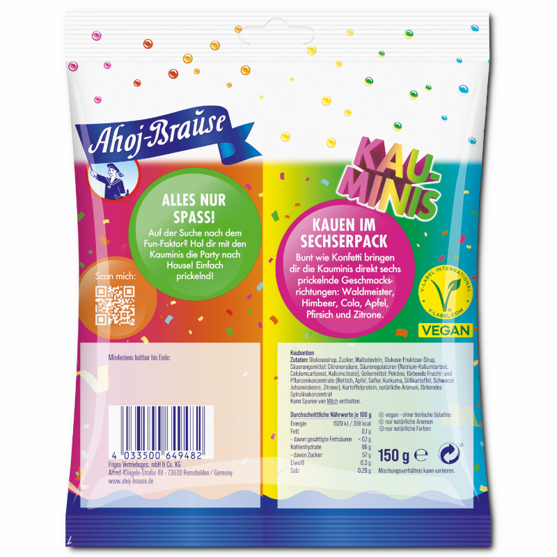 Frigeo Ahoj-Brause Kauminis, vegane Kaubonbons, 150g Beutel