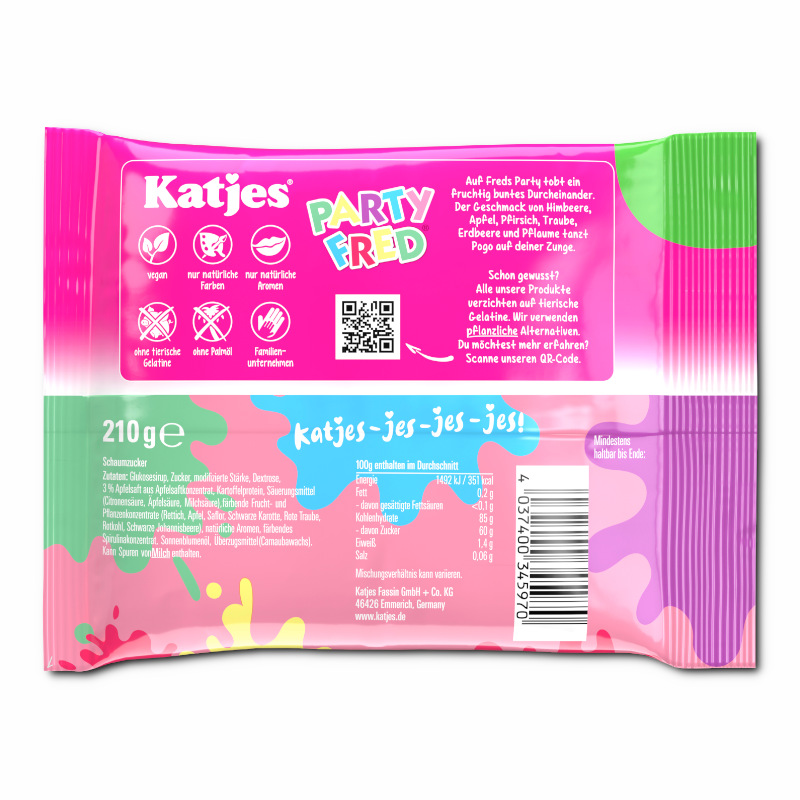 Katjes Party Fred, veganes Fruchtgummi, bunt, 210g Beutel