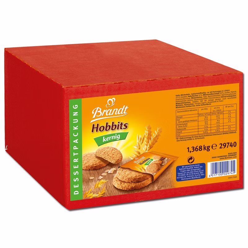 Brandt Hobbits Kernig, Gebäck, Mürbekeks 18 Rollen je 250g