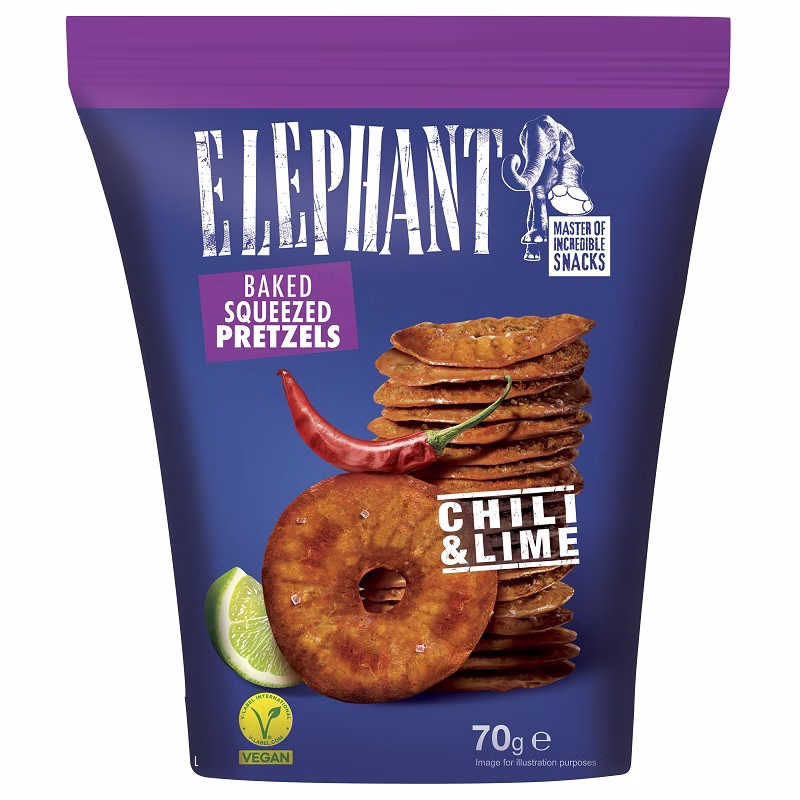 Elephant Baked Squeezed Pretzels Chili & Lime, Laugengebäck, 70g Beutel