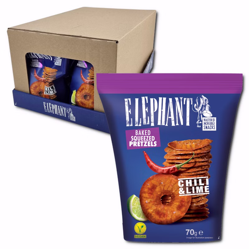 Elephant Baked Squeezed Pretzels Chili & Lime, Laugengebäck, 12 Beutel je 70g
