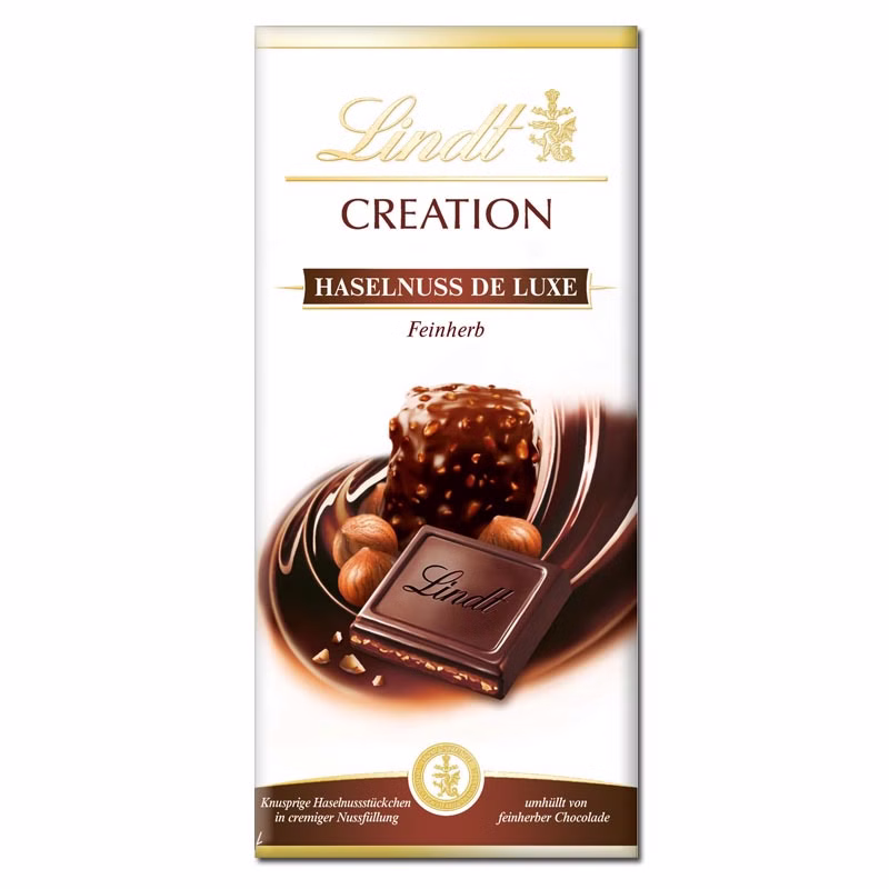 Lindt Creation ist eine Premium-Schokoladenmarke von Lindt, bekannt für Tafeln mit edlen Füllungen wie Pistazie, Crème Brûlée, Haselnuss-Mandel Crème oder Frucht.