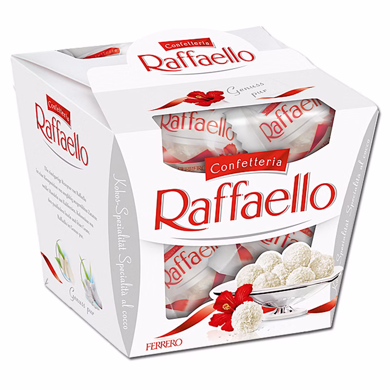 Raffaello steht für feinste Qualität von Ferrero und kombiniert Mandeln, Kokosraspeln und cremige Kokos-Mandelfüllung in jeder Praline. Ob als klassischer Snack, Geschenkidee oder für einen besonderen Moment – Raffaello ist der süße Genuss für jede Gelegenheit.