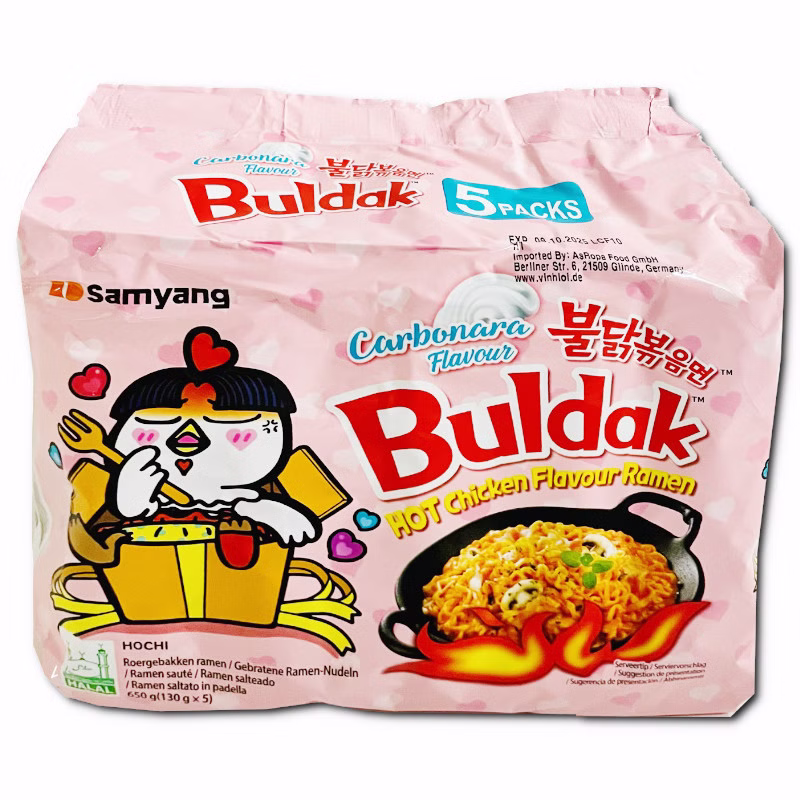 Samyang Buldak Hot Chicken Carbonara, Ramen, 5 Packungen je 130g