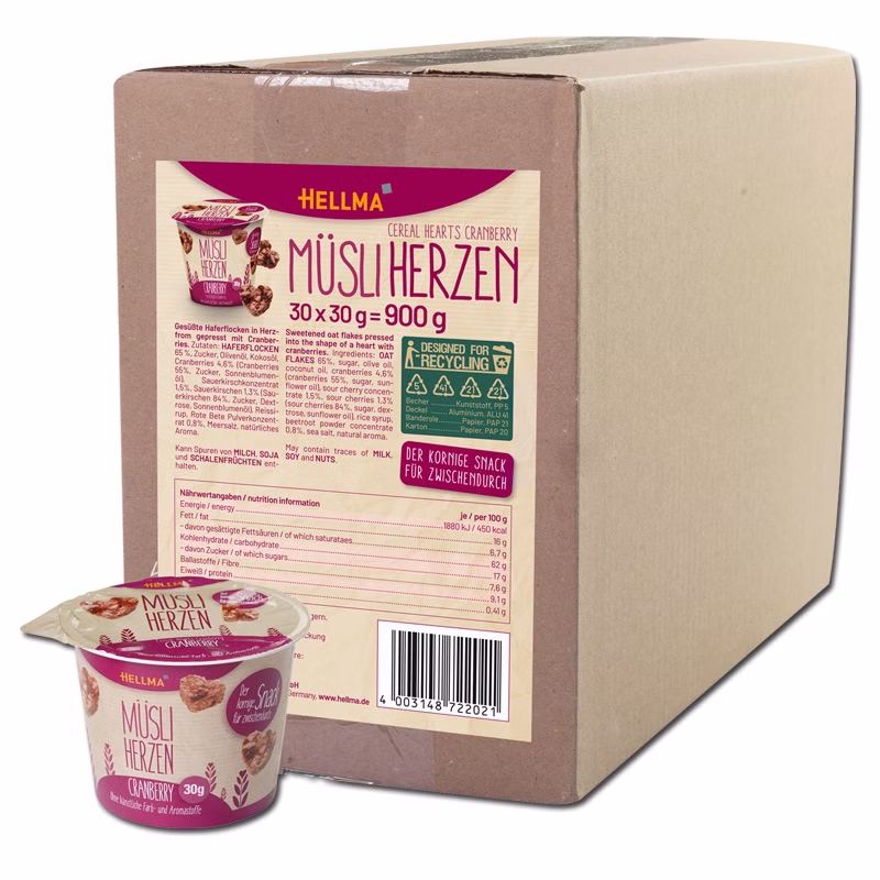 Hellma Müsli-Herzen Cranberry 30 Becher je 30g