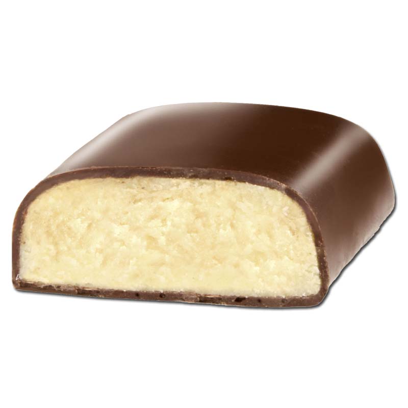 Zutaten: Zucker, MANDELN gemahlen (24%), Kakaomasse, Wasser, Glukosesirup, Kakaobutter, Feuchthaltemittel: Invertase; Emulgator: Lecithin (SOJA). Kann andere SCHALENFRÜCHTE, GLUTEN und MILCHERZEUGNISSE enthalten.