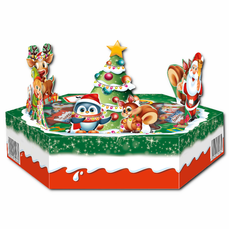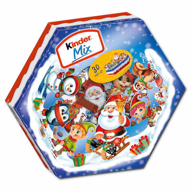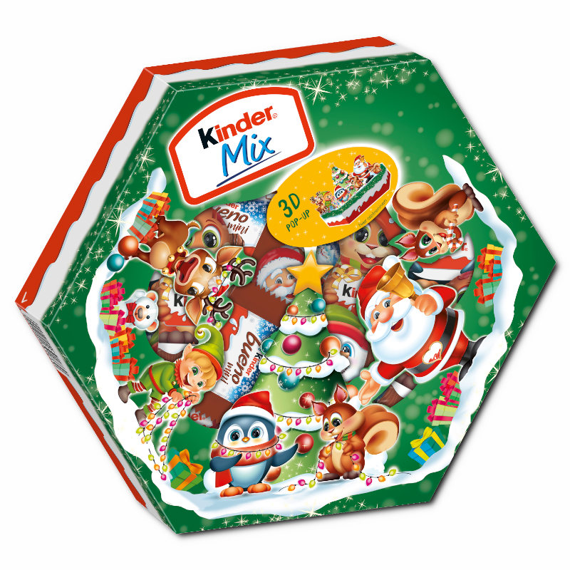 Beschreibung: Der Kinder Maxi Mix Teller enthält verschiedene, einzeln verpackte Mini-Riegel der Sorten Kinder Schokolade Hohlfiguren, Kinder Bueno Mini, Kinder Schokolade Mini. Auf dem Deckel der attraktiven Packung befinden sich kleine Pappfiguren, die aufgestellt werden können und so eine weihnachtliche Tischdeko abgeben. Eine tolle Idee, wenn über die Festtage Besuch kommt. Den Kinder Maxi Mix Teller gibt es in zwei unterschiedlichen Motiven, die leider nicht frei gewählt werden können. Wir bitten Sie dafür um Verständnis.
