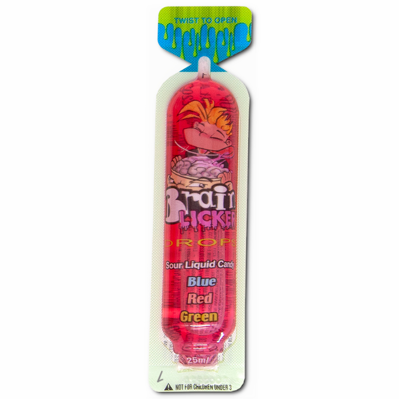 Beschreibung: Brain Licker Drops sind der saure Spaß mit Drehverschluß. Einfach die Packung am oberen Ende aufdrehen und die Flüssigkeit direkt in den Mund spritzen. Die saure Flüssigkeit gibt es in den Farben Grün, Blau und Rot. Eine Packung ist ca. 12,5 cm lang und ca. 3 cm breit. Das Angebot umfasst einen Brain Licker Drops. Wir bitten um Verständnis, dass die Farbe nicht frei gewählt werden kann.